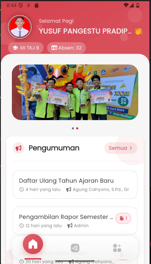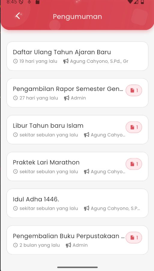 Note: If an announcement contains an attachment, you can tap the 📎 icon to view or download the provided file (e.g., notification letter, schedule, or form).