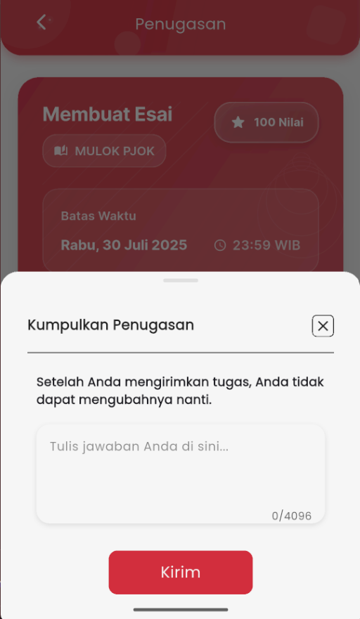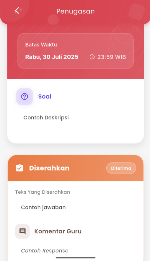 This assignment feature makes it easy for students to complete assignments on time and ensures all processes are well-recorded directly from the mobile application.