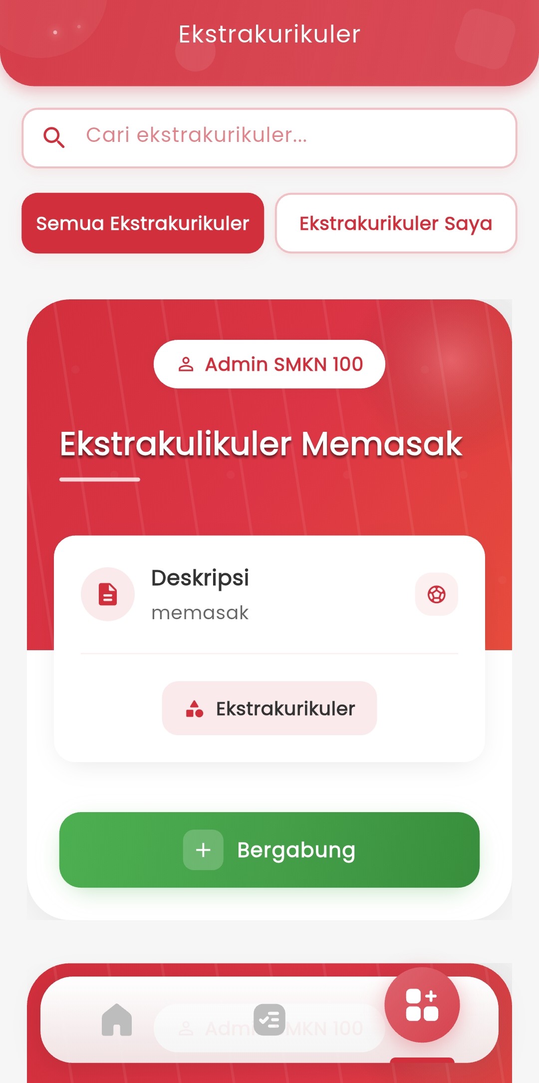 You can see a complete list of all extracurricular activities available at school. Each extracurricular is displayed in a card format containing: